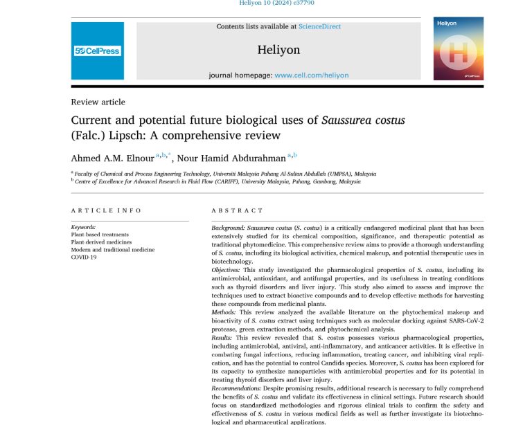 Interestingly, GA is a natural product recognized as safe by FAO and World Health Organization (WHO) in applications for treating degenerative diseases. The concepts and methodologies of nutritional therapy promise to solve related problems across different fields and positively impact multiple sustainable development goals (SDGs), including SDG-1, SDG-2, SDG-3, SDG-4, SDG-8, SDG-9, SDG-13, and SDG-17. Thus, Dr Elnour’s academic performance was described as outstanding, and as a result, it awarded him a special scholarship for outstanding students throughout his postgraduate career.